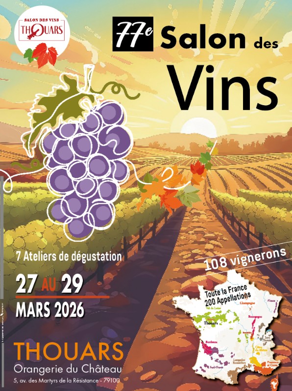 Chaque année en mars, le salon VINS ET TERROIRS, se déroule sur le site prestigieux du château de Thouars. L’ancienne Orangerie accueille les viticulteurs venus de toutes les régions viticoles françaises, 100 viticulteurs présents.